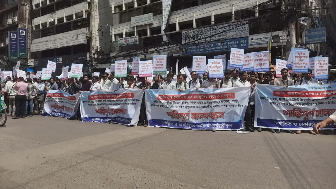 ৬ ইসলামী ব্যাংকের চাকরিচ্যুতদের মানববন্ধন, পুনর্বহালের দাবি