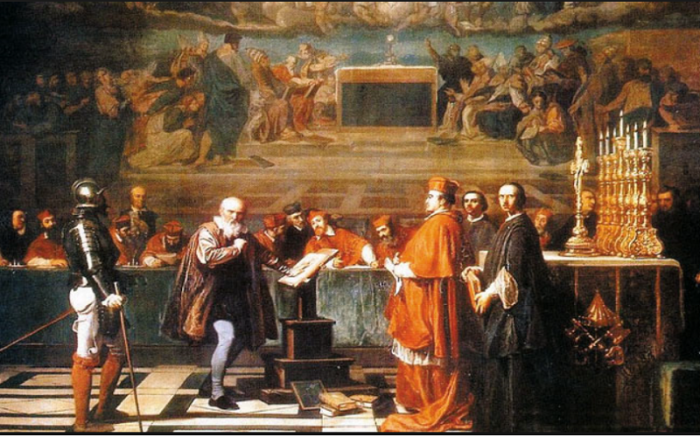 সক্রেটিসের দুই হাজার বছর পর। ১৬৩৩ সাল। রোমে তলব করা হলো গ্যালিলিওকে। অপরাধ চার্চের আদেশ অমান্য, বিনা অনুমতিতে বই প্রকাশ, ধর্মবিরোধী মত এবং বাইবেল সম্পর্কে সংশয় প্রচার। তারও আগে ১৬১৬ সালের দিকে তাকে বলা হয়েছিল কোপার্নিকাসের মত নিয়ে ঘাটাঘাটি না করতে। ইতোমধ্যে গ্যালিলিও আবিষ্কার করেন টেলিস্কোপের মতো যন্ত্র। সাথে আছে পড়ন্ত বস্তু এবং সরল দোলকের সূত্রের মতো কিছু মতবাদ। প্রত্যক্ষ করেন পৃথিবী সূর্যকে কেন্দ্র করে নিয়ত ঘূর্ণায়মান।