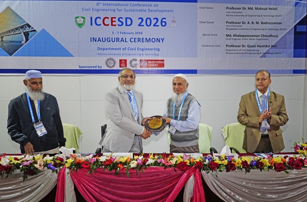 ‘টেকসই উন্নয়নের জন্য সিভিল ইঞ্জিনিয়ারিং’-এই প্রতিপাদ্যকে সামনে রেখে খুলনা প্রকৌশল ও প্রযুক্তি বিশ্ববিদ্যালয় (কুয়েট)-এর সিভিল ইঞ্জিনিয়ারিং বিভাগের আয়োজনে শুরু হয়েছে তিন দিনব্যাপী ৮ম আন্তর্জাতিক কনফারেন্স ‘আইসিসিইএসডি ২০২৬’।