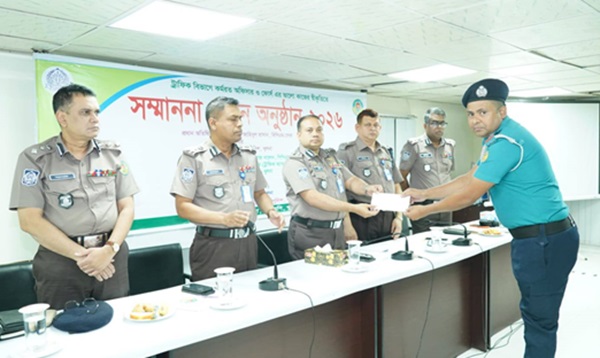 কেএমপি ট্রাফিক সদস্যদের পুরস্কৃত করলেন পুলিশ কমিশনার