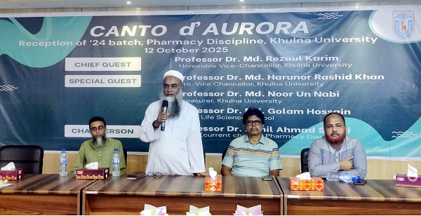 খুলনা বিশ্ববিদ্যালয়ের ফার্মেসী ডিসিপ্লিনের ’২৪ ব্যাচের শিক্ষার্থীদের নবীনবরণ রবিবার (১২ অক্টোবর) দুপুর ১২টায় ৩নং একাডেমিক ভবনের মাল্টিপারপাস রুমে অনুষ্ঠিত হয়। অনুষ্ঠানে প্রধান অতিথি হিসেবে বক্তব্য রাখেন জীববিজ্ঞান স্কুলের ডিন প্রফেসর ড. মোঃ গোলাম হোসেন।