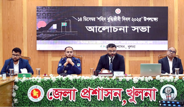 শহিদ বুদ্ধিজীবী দিবস ২০২৫ উপলক্ষ্যে আলোচনা সভা আজ রোববার (১৪ ডিসেম্বর) খুলনা জেলা প্রশাসকের সম্মেলনকক্ষে অনুষ্ঠিত হয়। অনুষ্ঠানে সভাপতিত্ব করেন জেলা প্রশাসক আ. স. ম. জামশেদ খোন্দকার। অনুষ্ঠানের শুরুতে মহান মুক্তিযুদ্ধে অবদান রাখা সকল শহিদদের স্মরণে এক মিনিট নিরবতা পালন করা হয়।