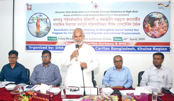 জলবায়ু পরিবর্তনজনিত অভিবাসী ও অভ্যন্তরীণ বাস্তুচ্যুত জনগোষ্ঠীর সামাজিক নিরাপত্তা কর্মসূচি শক্তিশালীকরণ শীর্ষক গোলটেবিল বৈঠক আজ বুধবার (০৮ এপ্রিল) খুলনা কারিতাস আঞ্চলিক কার্যালয়ের সম্মেলনকক্ষে অনুষ্ঠিত হয়। বেসরকারি উন্নয়ন সংস্থা কারিতাস আয়োজিত গোলটেবিল বৈঠকে প্রধান অতিথি ছিলেন খুলনা সিটি কর্পোরেশনের প্রশাসক নজরুল ইসলাম মঞ্জু।
