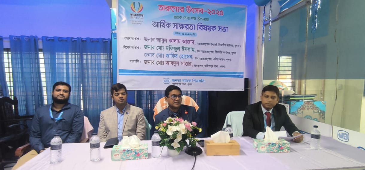 জনতা ব্যাংক পিএলসি, খুলনা বিভাগীয় কার্যালয় এর মহাব্যবস্থাপক ইনচার্জ আবুল কালাম আজাদ প্রধান অতিথি হিসেবে সভায় উপস্থিত ছিলেন। তিনি তাঁর বক্তব্যে তরুণদেরকে ডিজিটাল ব্যাংকিং সেবার সঙ্গে যুক্ত হওয়ার আহ্বান জানিয়ে বলেন, “নতুন প্রজন্মকে আর্থিক শৃঙ্খলার আওতায় আনতে এবং তাদের মধ্যে সঞ্চয়ের মানসিকতা গড়ে তুলতে হবে। প্রযুক্তিনির্ভর আর্থিক সেবা গ্রহণ করে তারা শুধু নিজেদের জীবনই উন্নত করবে না, নতুন বাংলাদেশ গড়ার লক্ষো পূরণেও গুরুত্বপূর্ণ ভূমিকা রাখবে।”