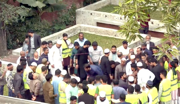 আজ বেলা আড়াইটার দিকে জাতীয় সংসদ ভবনের দক্ষিণ প্লাজায় লাখো মানুষের অংশগ্রহণে হাদির জানাজা সম্পন্ন হয়। জানাজায় ইমামতি করেন ওসমান হাদির বড় ভাই আবু বকর সিদ্দিক।