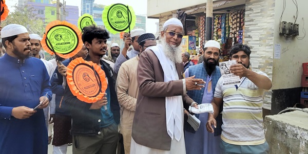দেশের পরিবর্তনের জন্য ইসলামের পক্ষে, ন্যায়ের পক্ষে, ভালো নীতি-আদর্শের পক্ষে, মানবতার কল্যাণে হাতপাখায় ভোট দেওয়ার আহবান জানান।