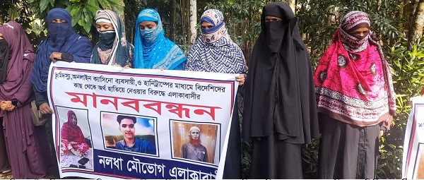 নলধা-মৌভোগ গ্রামের শতাধিক নারী-পুরুষের অংশগ্রহণে অনুষ্ঠিত এ মানববন্ধনে বক্তারা অভিযোগ করেন, একটি প্রভাবশালী চক্র বছরের পর বছর এলাকায় ত্রাসের রাজত্ব কায়েম করেছে। তারা কখনো ক্ষমতার দাপট দেখিয়ে, কখনো প্রতারণার ফাঁদ পেতে সাধারণ মানুষ ও প্রবাসীদের কাছ থেকে কোটি কোটি টাকা হাতিয়ে নিচ্ছে। প্রশাসনের নিষ্ক্রিয়তায় চক্রটি আজ বেপরোয়া ও অদমনীয় হয়ে উঠেছে।