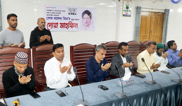 বিএনপি’র চেয়ারপার্সন ও সাবেক প্রধানমন্ত্রী বেগম খালেদা জিয়া’র আশু রোগ মুক্তি ও দীর্ঘায়ু কামনায় খুলনা মেডিকেল কলেজ হাসপাতালে ড্যাব, কর্মকর্তা ও কর্মচারী ঐক্য পরিষদের উদ্যোগে কুরআন খানী ও দোয়া অনুষ্ঠিত হয়েছে।