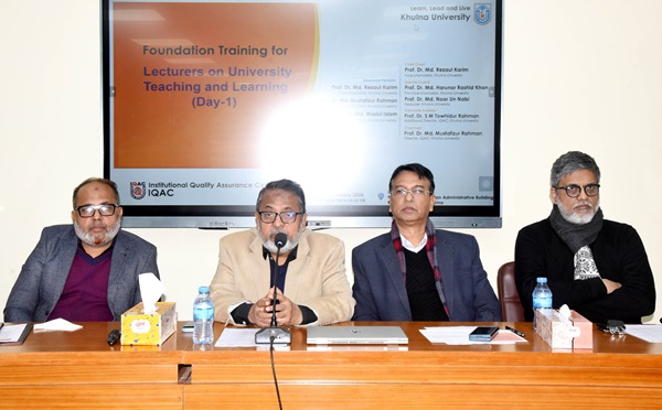 খুলনা বিশ্ববিদ্যালয়ে প্রভাষক পদে যোগদানকারী নবীন শিক্ষকদের ৫ দিনব্যাপী প্রশিক্ষণ কর্মসূচি উদ্বোধন করা হয়েছে। রবিবার (১১ জানুয়ারি) দুপুরে বিশ্ববিদ্যালয়ের ইনস্টিটিউশনাল কোয়ালিটি অ্যাসুরেন্স সেল (আইকিউএসি) আয়োজিত এ প্রশিক্ষণ কর্মসূচির উদ্বোধন করেন প্রধান অতিথি উপাচার্য প্রফেসর ড. মোঃ রেজাউল করিম।