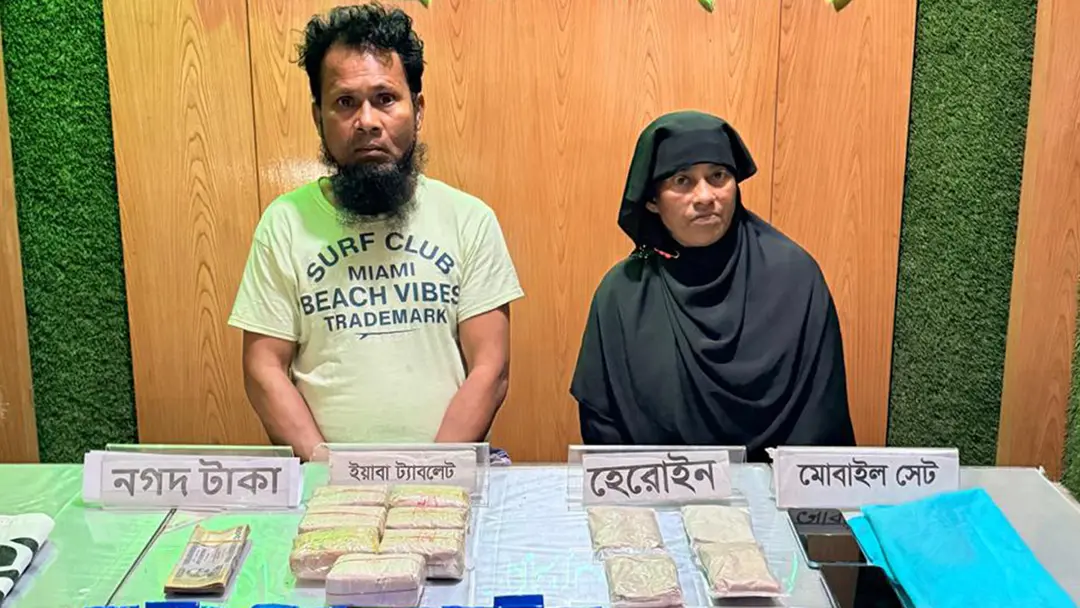 রাজধানী ঢাকার ডেমরা ও নারায়ণগঞ্জের রূপগঞ্জে পৃথক অভিযানে কথিত ‘হেরোইন সম্রাজ্ঞী’ ও ‘ইয়াবা সম্রাট’কে গ্রেপ্তার করেছে মাদকদ্রব্য নিয়ন্ত্রণ অধিদপ্তর (ডিএনসি)। এ সময় তাদের কাছ থেকে বিপুল পরিমাণ হেরোইন ও ইয়াবা উদ্ধার করা হয়েছে। ডিএনসি জানায়, রোববার (৫ এপ্রিল) দিনব্যাপী পরিচালিত অভিযানে প্রথমে ডেমরা থানাধীন পূর্ব ডগাইর এলাকার একটি চারতলা ভবন থেকে ৪০০ গ্রাম হেরোইন ও ৫০০ পিস ইয়াবাসহ হোসনে আরা বেগম (৩৮) নামের এক নারীকে আটক করা হয়। পরবর্তীতে তার দেওয়া তথ্যের ভিত্তিতে নারায়ণগঞ্জের রূপগঞ্জ থানাধীন চনপাড়া এলাকার একটি বাসা থেকে ২০ হাজার পিস ইয়াবাসহ মো. ইদ্রিস (৪৫) নামে আরেক মাদক কারবারিকে গ্রেপ্তার করা হয়। অভিযানে মোট ২০ হাজার ৫০০ পিস ইয়াবা, ৪০০ গ্রাম হেরোইন, ৫০ হাজার টাকা নগদ অর্থ এবং দুটি মোবাইল ফোন জব্দ করা হয়েছে।